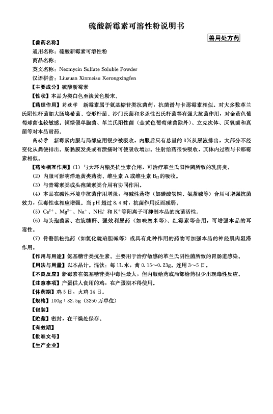 用于巴氏桿菌和大腸桿菌所致的細菌性疾病。