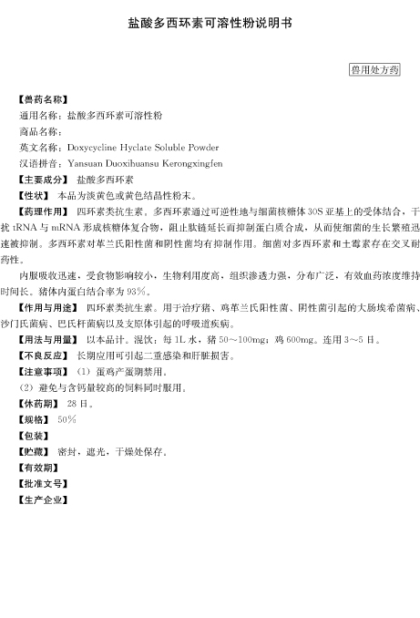 用于治療豬、雞革蘭氏陽性菌、陰性菌引起的大腸埃希菌病、沙門氏菌病、巴氏桿菌病以及支原體引起的呼吸道疾病。
