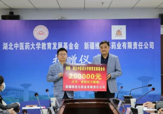 10月6日,“新疆維吾爾藥業有限責任公司教育發展基金”捐贈儀式在湖北中醫藥大學舉行,湖北中醫藥大學黨委副書記李水清、新疆維吾爾藥業總經理韓祥志等參加捐贈儀式。儀式由湖北中醫藥大學基礎醫學院黨委副書記孔明望主持。該項捐贈在湖北中醫藥大學教育發展基金會設立“新疆維吾爾藥業有限責任公司教育發展基金”,金額為25萬元人民幣,主要用于基礎醫學院中藥藥理方面的科學研究及學科建設。