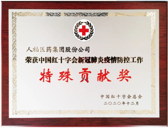 人福醫藥集團榮獲中國紅十字會新冠肺炎疫情防控工作特殊貢獻獎。
