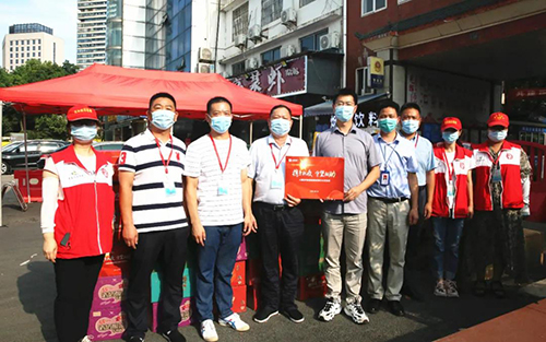 一個多星期以來,該小區醫護人員和工作人員一直堅守一線,經受著酷暑和物資短缺的多重考驗。在得知小區急需防疫物資和降暑等生活物資后,人福醫藥集團積極組織采購了12000只口罩、100公斤消殺酒精、50箱純凈水、50箱方便面,緊急送到社區工作人員手中。
