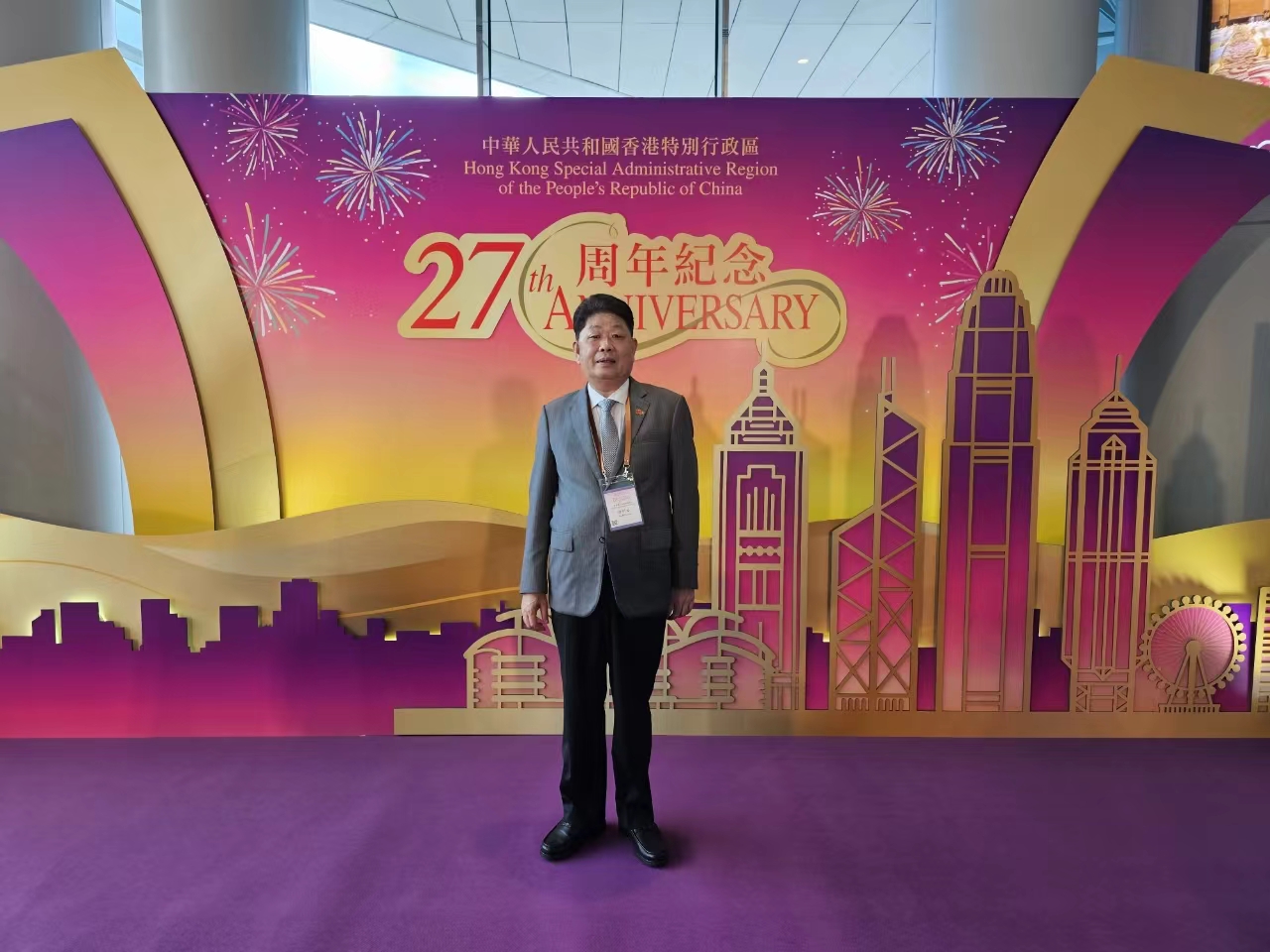 2024年7月1日上午八時,廣東省福建商會創會會長李賢義、會長許明金、榮譽會長李圣潑,受邀請參加在灣仔香港會議展覽中心金紫荊廣場舉行的“慶祝中華人民共和國香港特別行政區成立二十七周年”升旗儀式。并參加了隨后舉行的慶祝酒會活動。